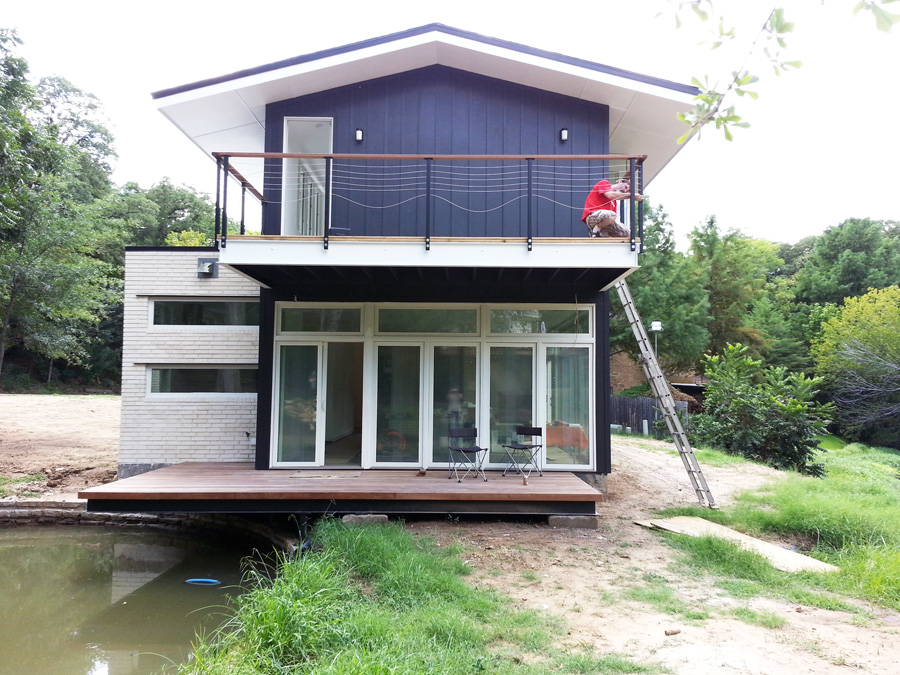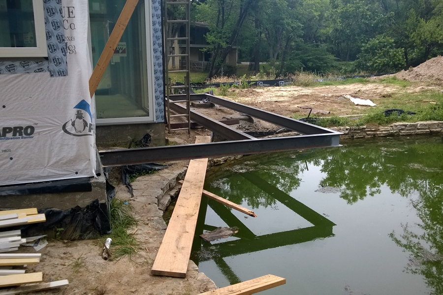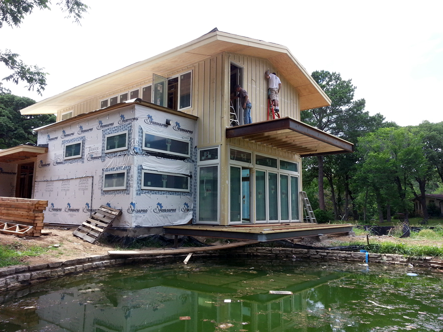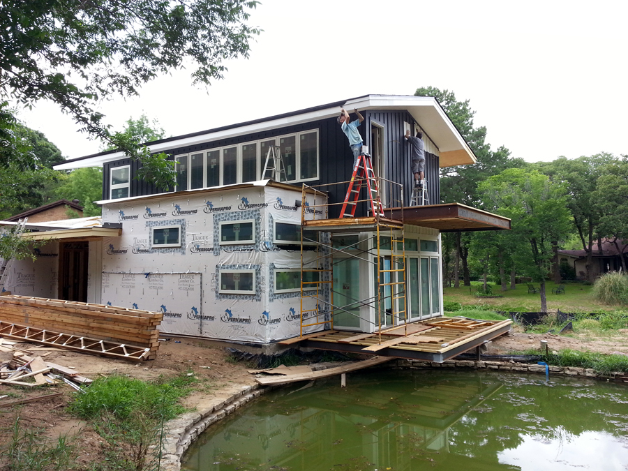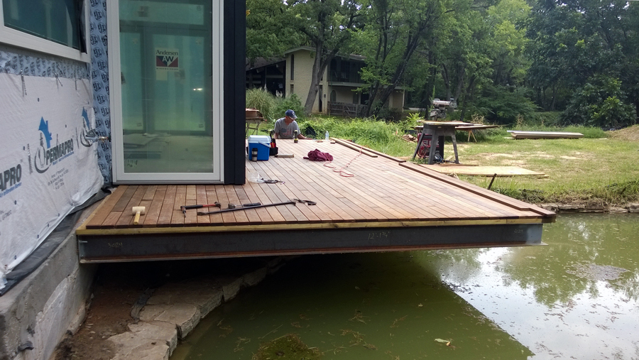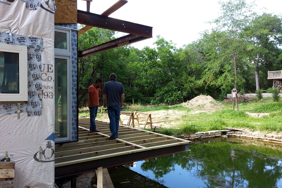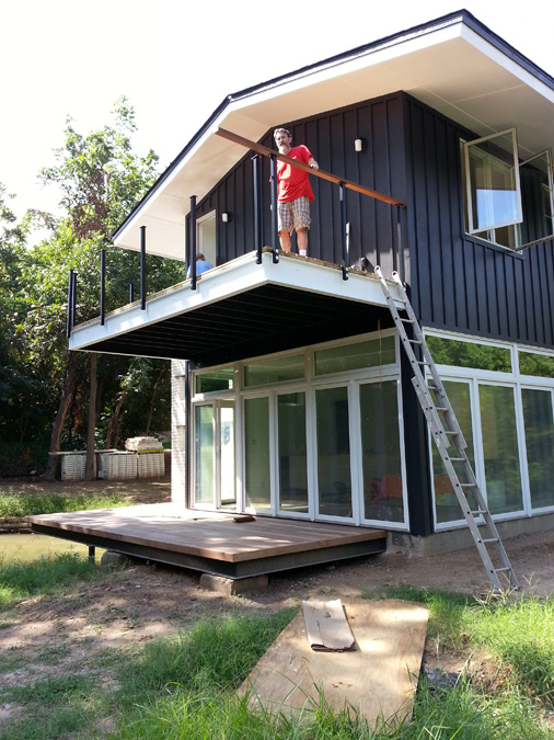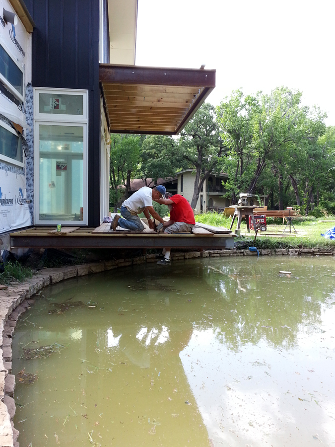 Please note the working lights! During the time between dyeing the floor on the first level and finishing the stairs, we passed our electrical inspection, Oncor installed the meter, and our electricity was finally switched on. That whole process was a pain in the left buttock. That’s all I’m going to say about that.