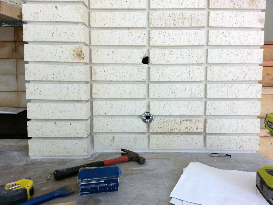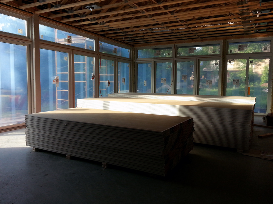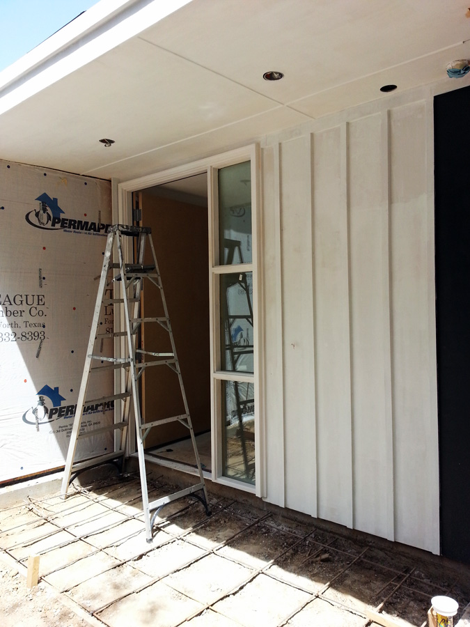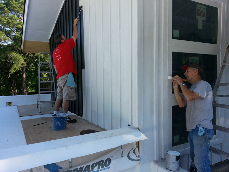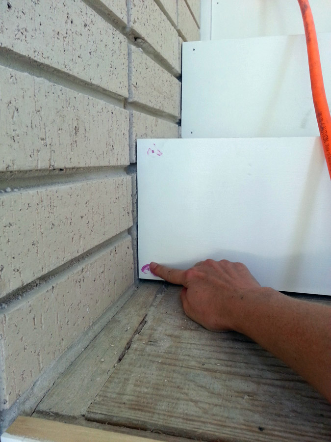 Not pictured: Mother-in-law scooting around the floor on “Rube the Cube” (a wooden box on casters), Popsicle stick in hand, scraping from the floor blobs of dried mud left from the taping and bedding process. Why a Popsicle stick and not something bigger, such as an actual paint scraper? We don’t know and at this point in the process it was too much work to ask too many questions. She, Rube, and that little stick got the floor spotless and that’s all that matters.