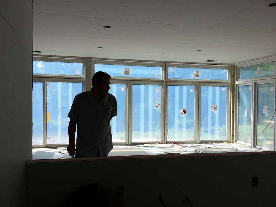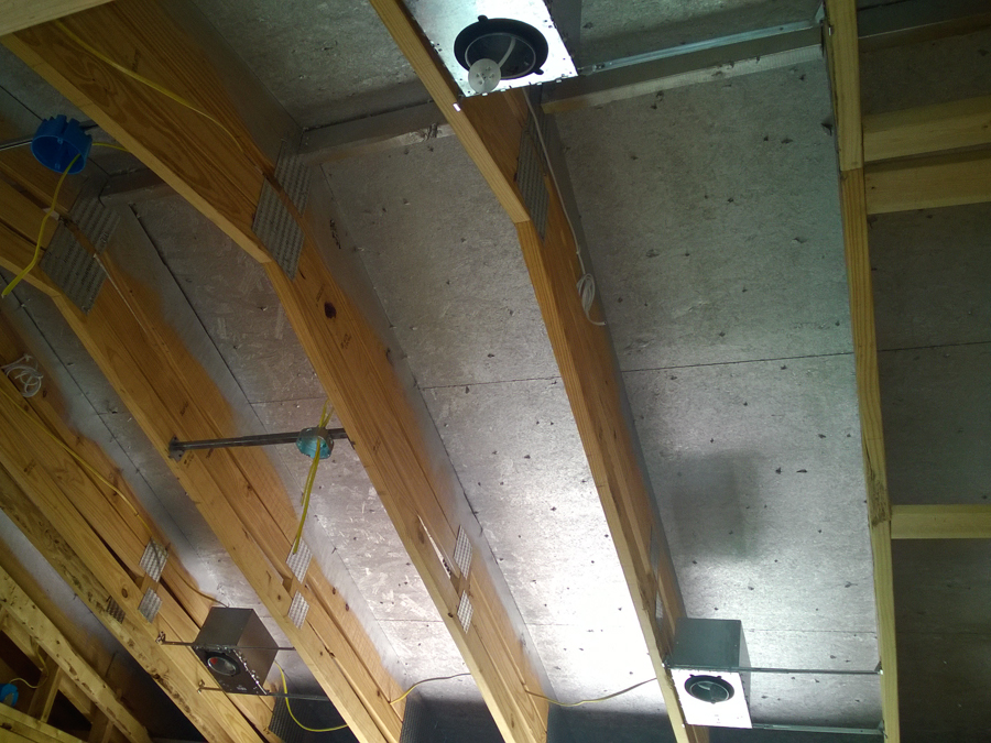 One glorious day, as FIL and I worked the floor in the kiddo’s room, the vent inspector showed up to test duct leakage.