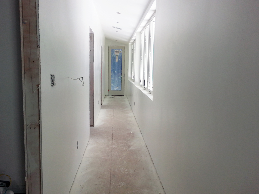 The picture below is when we moved from the hall into a bedroom. It was both a blessing and a curse to have electricity at this time: A blessing because we were under an intense and almost impossible deadline from the bank and being able to work well after the sun set saved us; a curse because we were so exhausted and working well after the sun set nearly killed us.