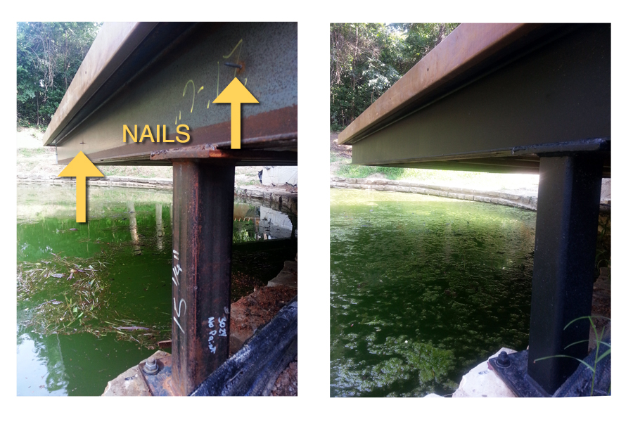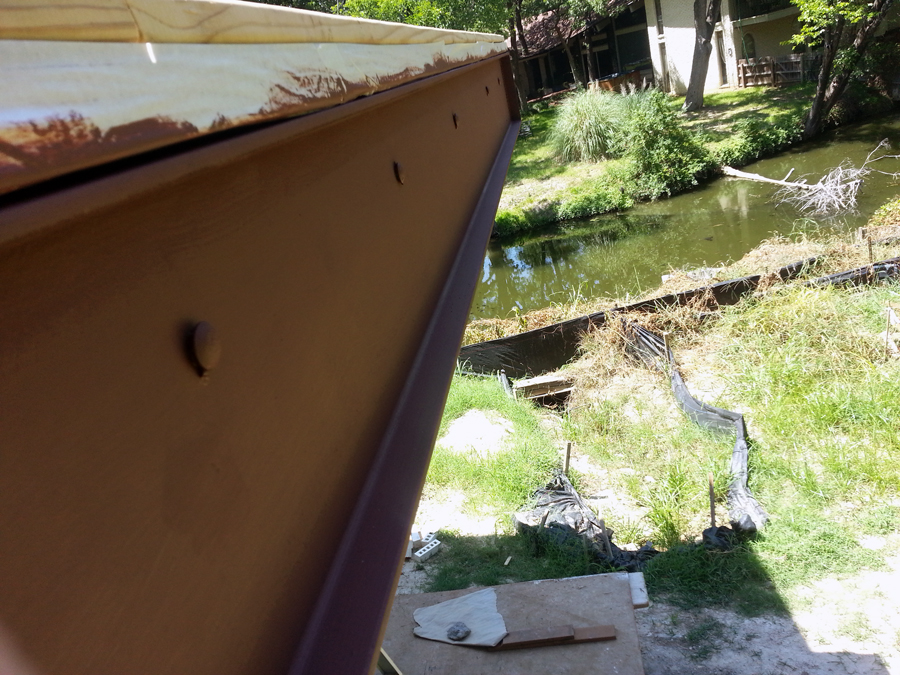 The dragon died when FIL and I installed the risers. Okay, fine, he installed the risers while I watched. I did my part by filling the nail holes. If you’re interested, I got a blister on my finger from this strenuous work.