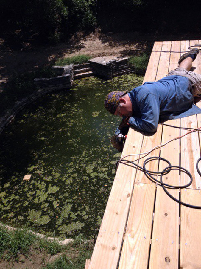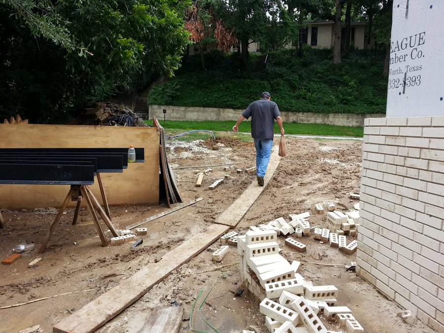 Everyone except Mark walked away from this work looking like Quasimodo. Don’t worry, Mark didn’t fare any better. This is where he lost a toe. Well, not a toe, exactly, but his whole toenail was ripped off by the machine pictured above. Okay, fine, not the whole nail, but definitely a whole corner. There was sooo much blood. I can’t emphasize enough the amount of blood. We’re just lucky water hoses and shop vacs were on-hand.