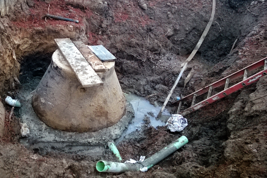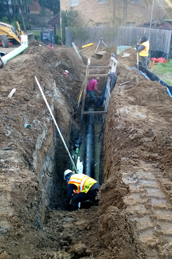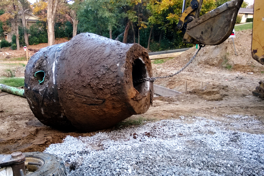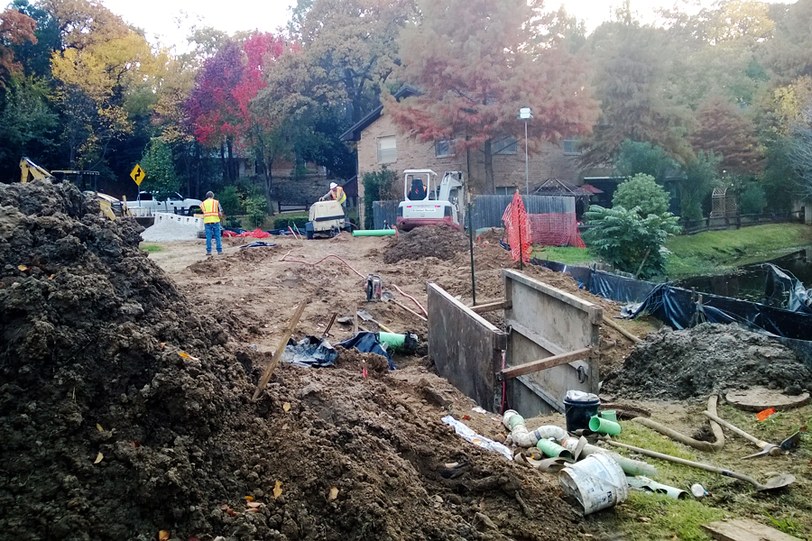 After serious delays due to weather – we can’t curse the rain that came in mid-late November since Texas has long been in a serious drought (but oh how I would like to) – the city moved the pipe and constructed a new manhole. Typed out, it seems all easy-peasy, but reality is far different.