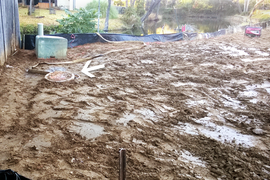 They had the added pleasure of dealing with leveling system for the pond, too.