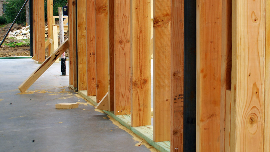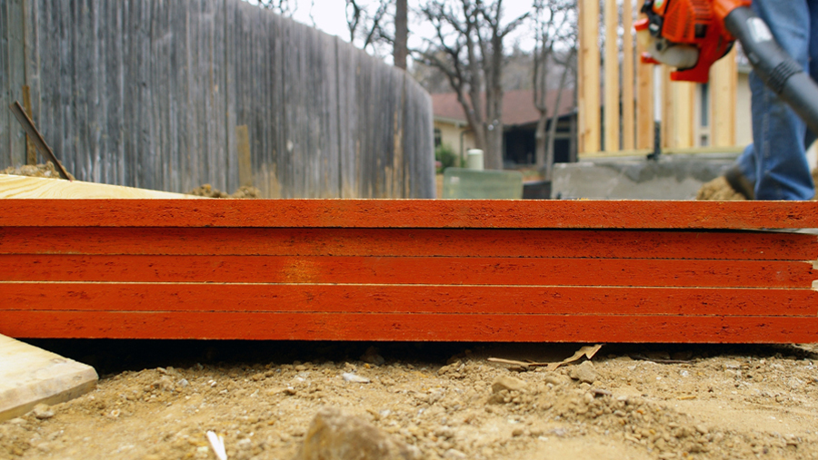 The green stuff on the bottom is treated lumber, we like that (insert knowing head nod here). And those studs are bigger than 2x4s. (I just assume bigger is better…so I nod in agreement, thread my thumbs through my belt loops and continue to follow him around like a puppy.)